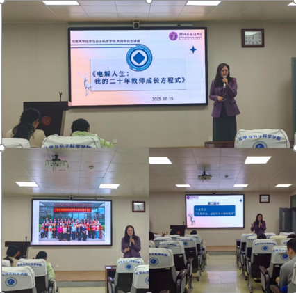 2025年10月15日,我们“化育讲堂·育师系列”专题讲座第七期如期举行。本次讲座以“电解人生:我的二十年教师成长方程式”为主题,特邀郑州外国语中学高级教师、教研组长、河南省名师李霞担任主讲。讲座由李海燕老师主持,学院2022级化学专业全体学生参加。