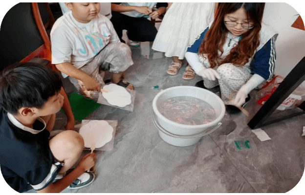漆扇活动结束后,志愿者们开展了折纸、绘画及“悄悄话”书写系列主题活动,以寓教于乐的形式点亮孩子们的艺术梦想,搭建起温暖的情感沟通桥梁。