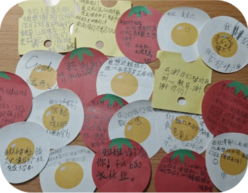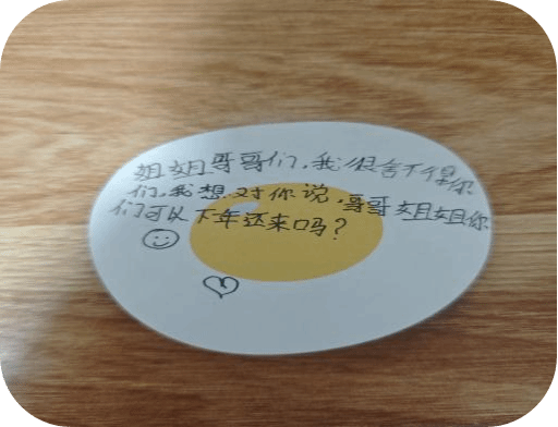 在“悄悄话”书写活动中,团队为孩子们准备了便利贴,邀请他们写下内心最真挚的话语。孩子们或低头沉思,或认真书写,将心中的感激与不舍倾注于笔端。